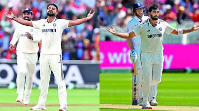 आकाश डीप और जसप्रित बुमराह (पीटीआई तस्वीरें) बाएं हाथ के पेसर अरशदीप सिंह को हाथों में चोट लगने के बाद, टीम इंडिया को अपने फास्ट बॉलिंग डिपार्टमेंट में एक और बड़ा झटका दिया गया है क्योंकि पेसर आकाश डीप को इंग्लैंड के खिलाफ चौथे टेस्ट से बाहर होने की संभावना है। TimesOfindia.com ने सीखा है…
